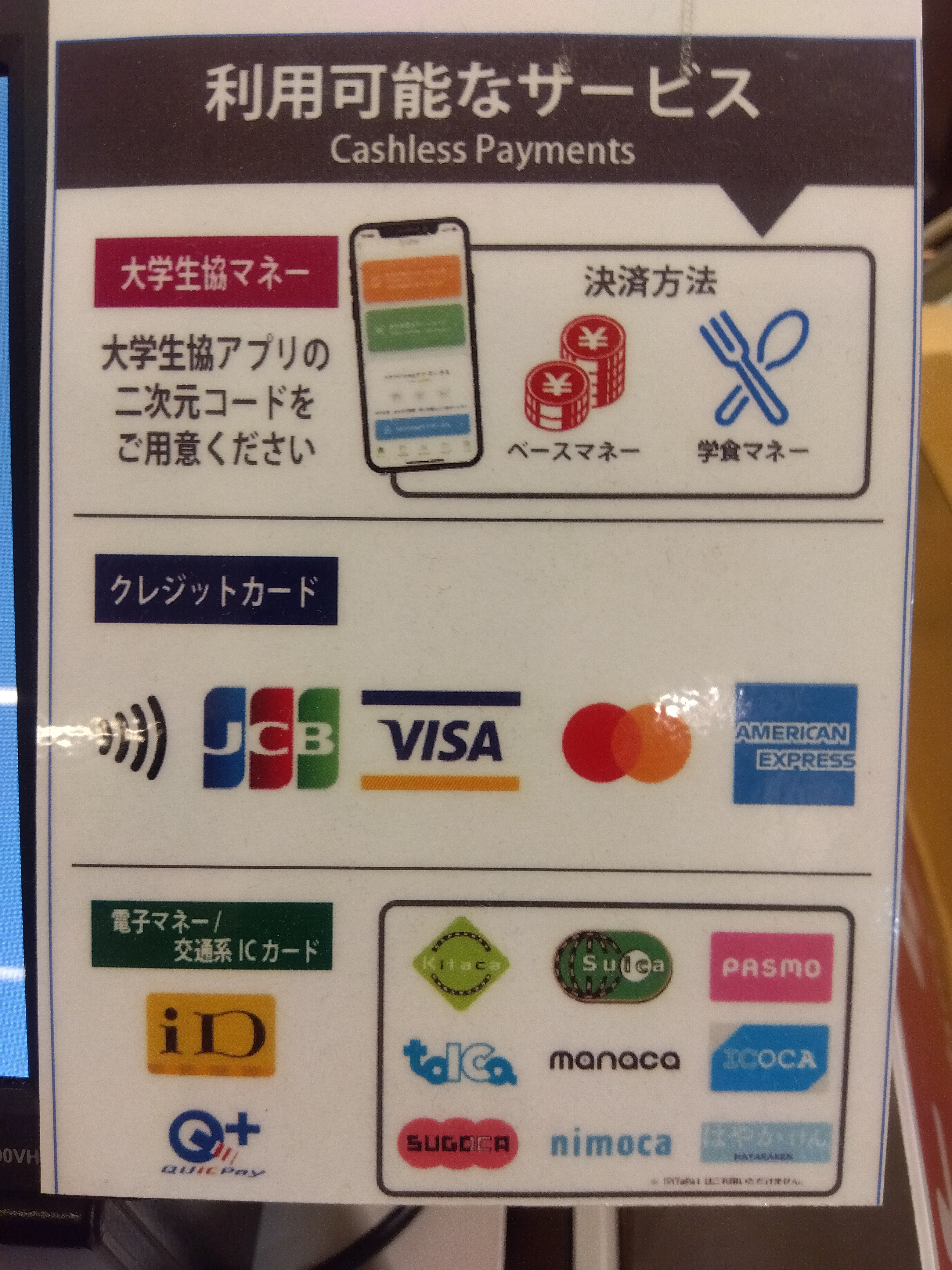 学食が2か所、キッチンカー、ローソンがあり、詳しくは大学の website にまとまっています。